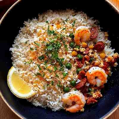 Dit unieke gerecht is een verrassende ontmoeting tussen de traditionele Kantonese rijsttechniek en de levendige smaken van de Middellandse Zee. Een culinaire brug die de rijke tradities van Aziatische en Mediterrane keukens samenbrengt in één spectaculaire schotel.