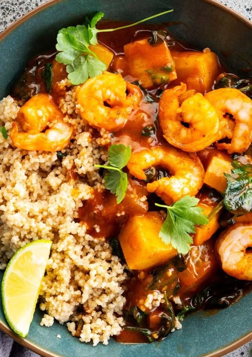 Deze verfijnde Marokkaanse tajine combineert de delicate smaak van scampi met de aardse tonen van wintergroenten. Het gerecht illustreert de veelzijdigheid van de Noord-Afrikaanse keuken, waarbij de traditionele bereidingswijze wordt toegepast op zeevruchten in plaats van het gebruikelijke vlees of gevogelte.