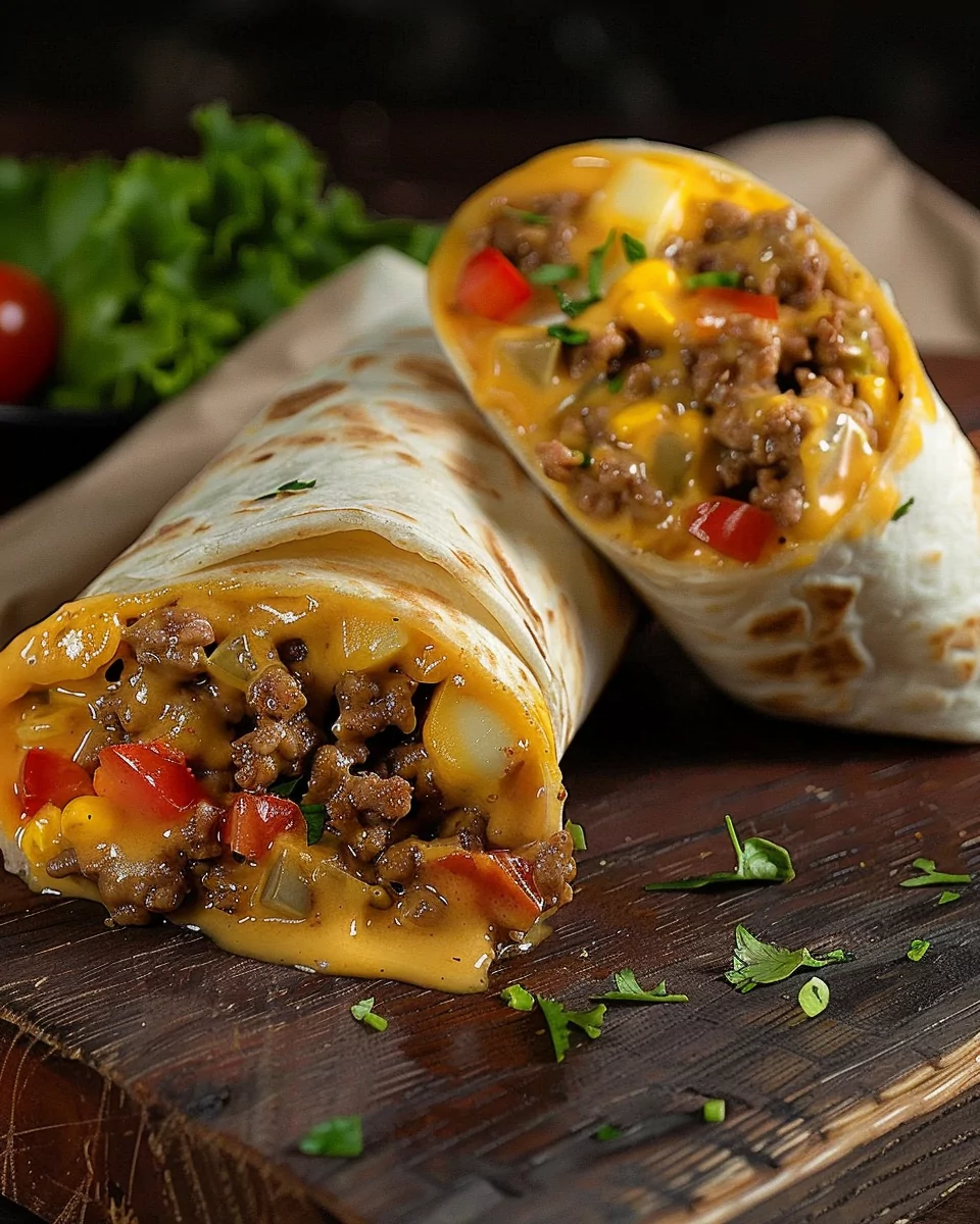 Een heerlijke combinatie van gekruid rundvlees, gesmolten kaas en verse groenten, verpakt in een warme tortilla. Dit traditionele Mexicaanse gerecht is perfect voor een snelle doordeweekse maaltijd of een gezellig weekend diner.