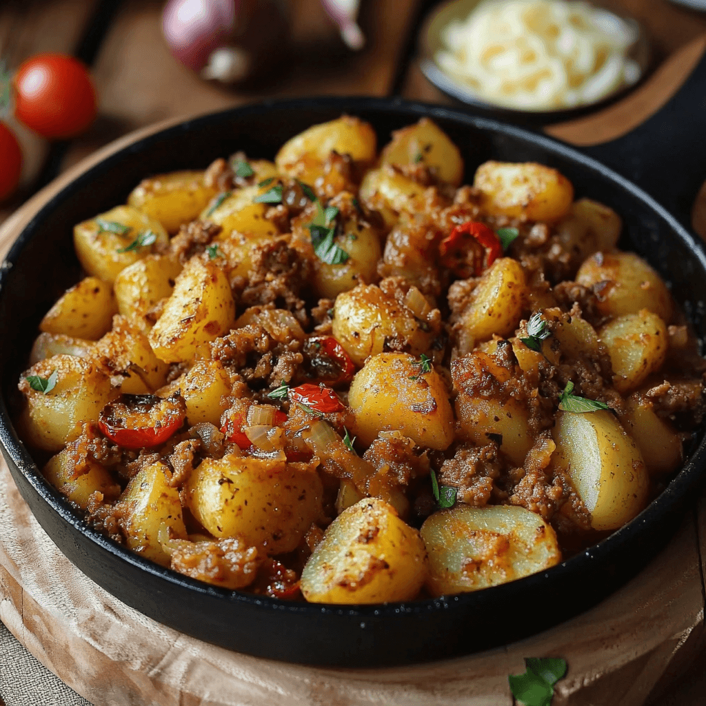 Deze hartige ovenschotel combineert knapperige aardappelen met sappig gekruid gehakt en romige eieren. Een traditioneel Nederlands gerecht met een moderne twist.