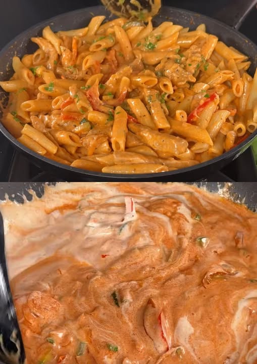 Deze pasta in een fluweelzachte, romige saus met mals varkensvlees en verse groenten is een explosie van smaak die je niet mag missen! De combinatie van tomatenpuree, aromatische kruiden en romige textuur creëert een saus die elke hap pasta omhult met pure overheerlijkheid. Dit gerecht bewijst dat eenvoudige ingrediënten samen iets magisch kunnen vormen – perfect voor doordeweekse avonden of als indrukwekkend weekendmaal.