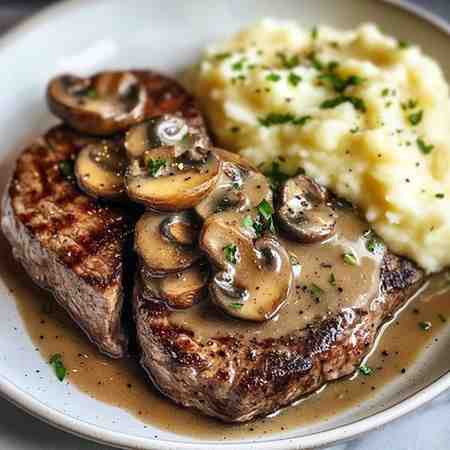 De combinatie van malse biefstuk, rijke champignonsaus en romige aardappelpuree is meer dan een maaltijd – het is een culinaire traditie die generaties lang wordt gekoesterd. Een gerecht dat elegantie en comfort perfect verenigt, geïnspireerd door klassieke steakhouse tradities.