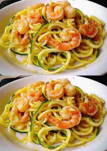 - Voeg courgetteslierten toe en roerbak op hoog vuur.