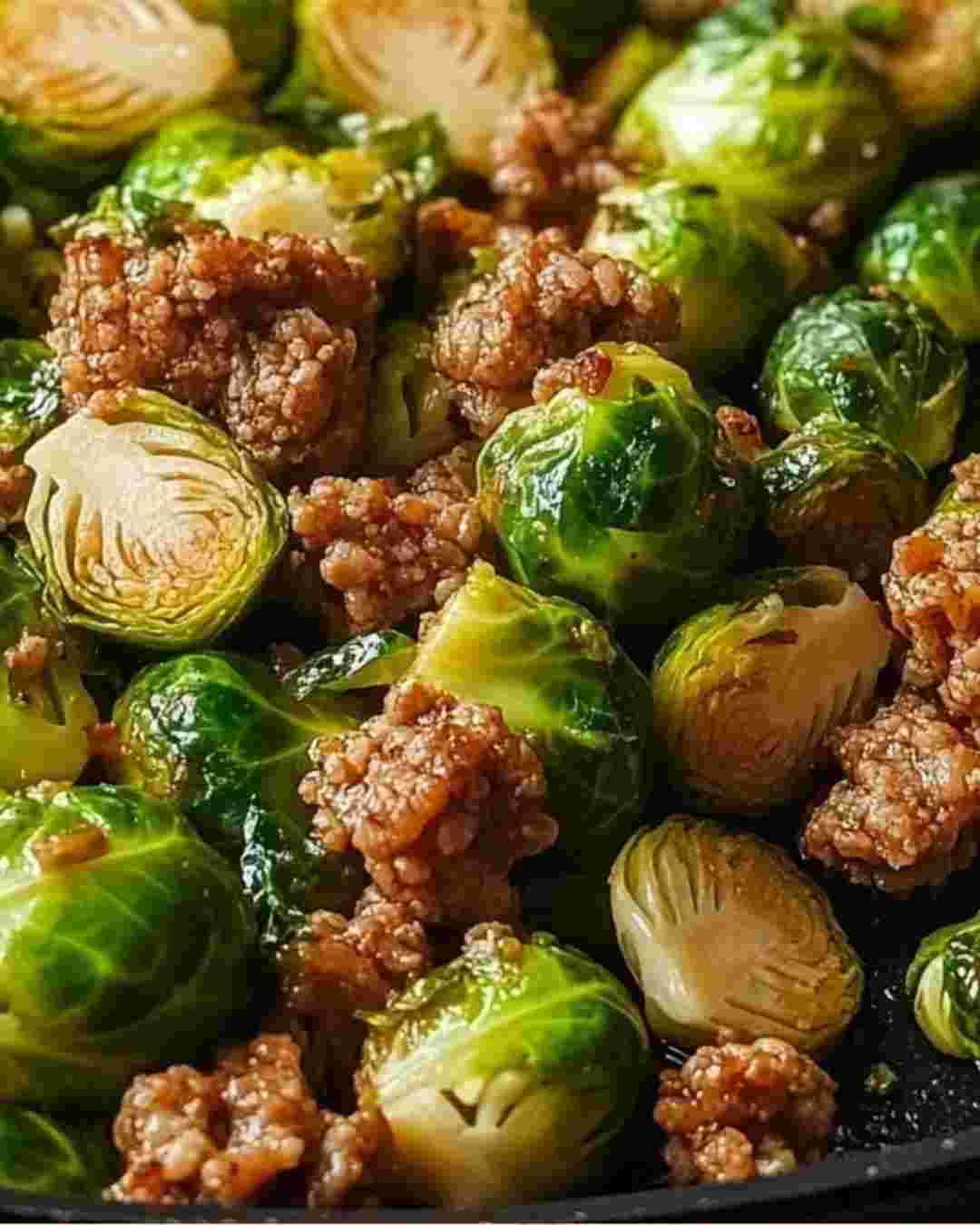 Geïnspireerd door de behoefte aan snelle, gezonde maaltijden die geen concessies doen aan smaak, combineert dit recept de aardse textuur van spruitjes met de rijkdom van gekruid gehakt. Het weerspiegelt de moderne keukentrend van eenvoud, nutritionele waarde en smaakintensiteit.