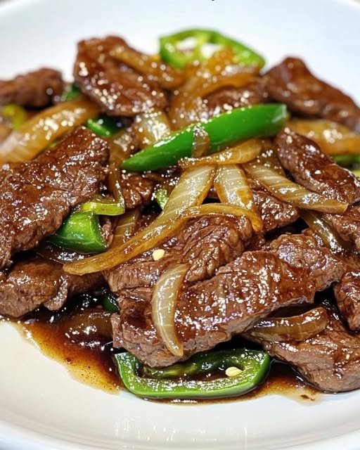 Enjoy your restaurant-quality beef and onion stir-fry – a perfect blend of tradition and flavor!