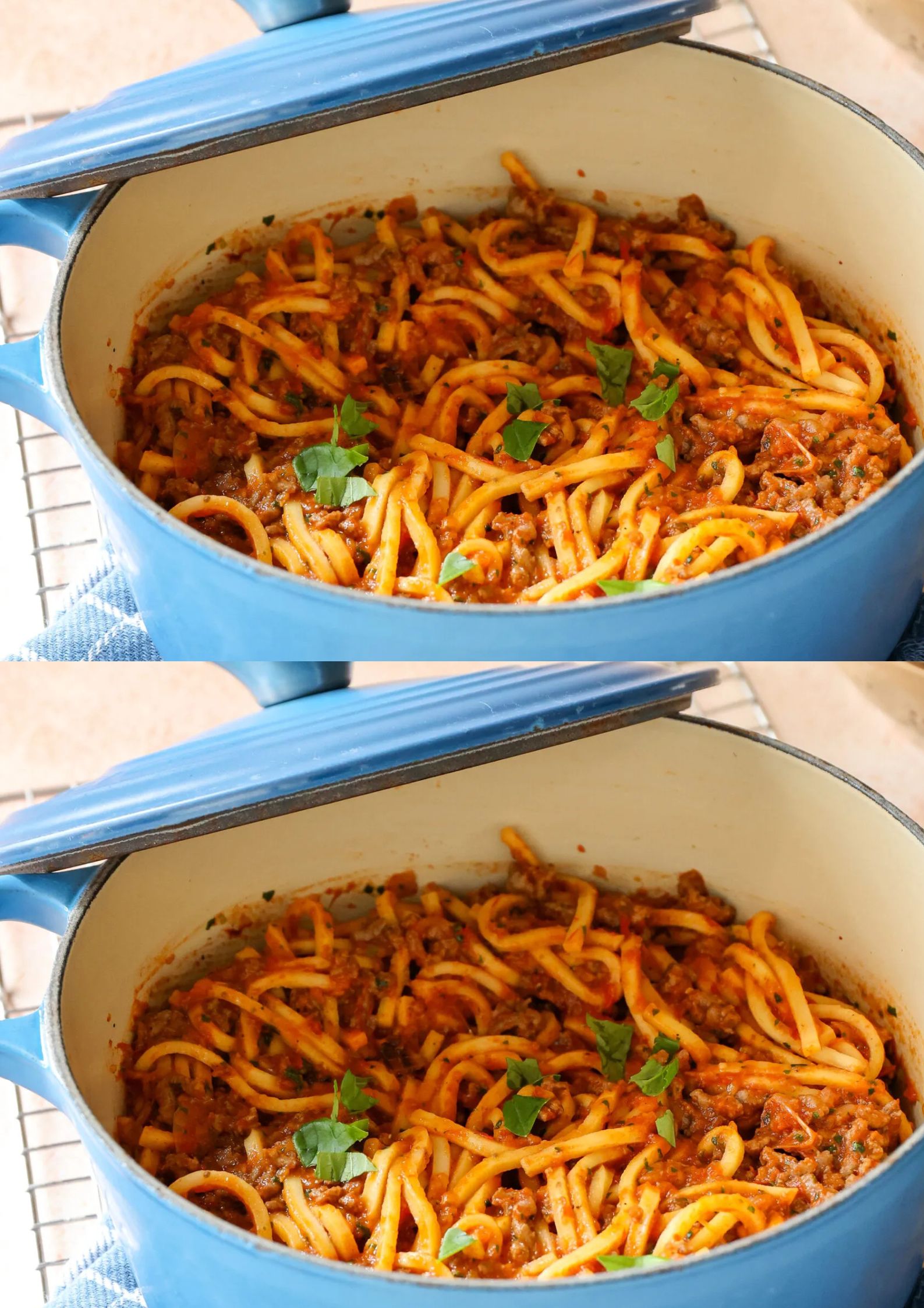 - Pas dikte aan met pastakookwater