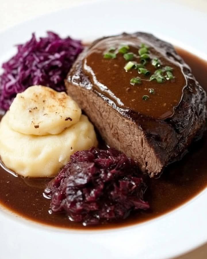 In het hart van het Rijnland, waar eeuwenoude culinaire tradities worden gekoesterd, vindt men de Sauerbraten – een gerecht dat meer is dan alleen voedsel. Het is een verhaal van geduld, ambacht en generaties van smaakvolle erfenis, waar elk stuk vlees wordt getransformeerd in een culinair meesterwerk.