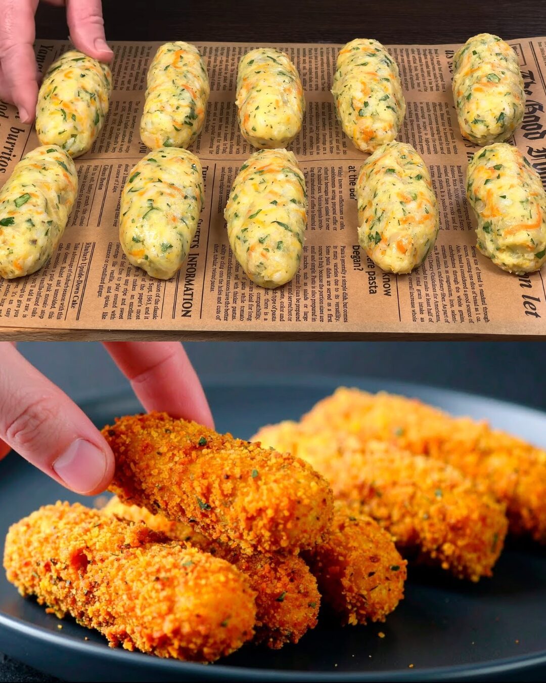 - Door paneermeel rollen zodat beide kanten bedekt zijn.