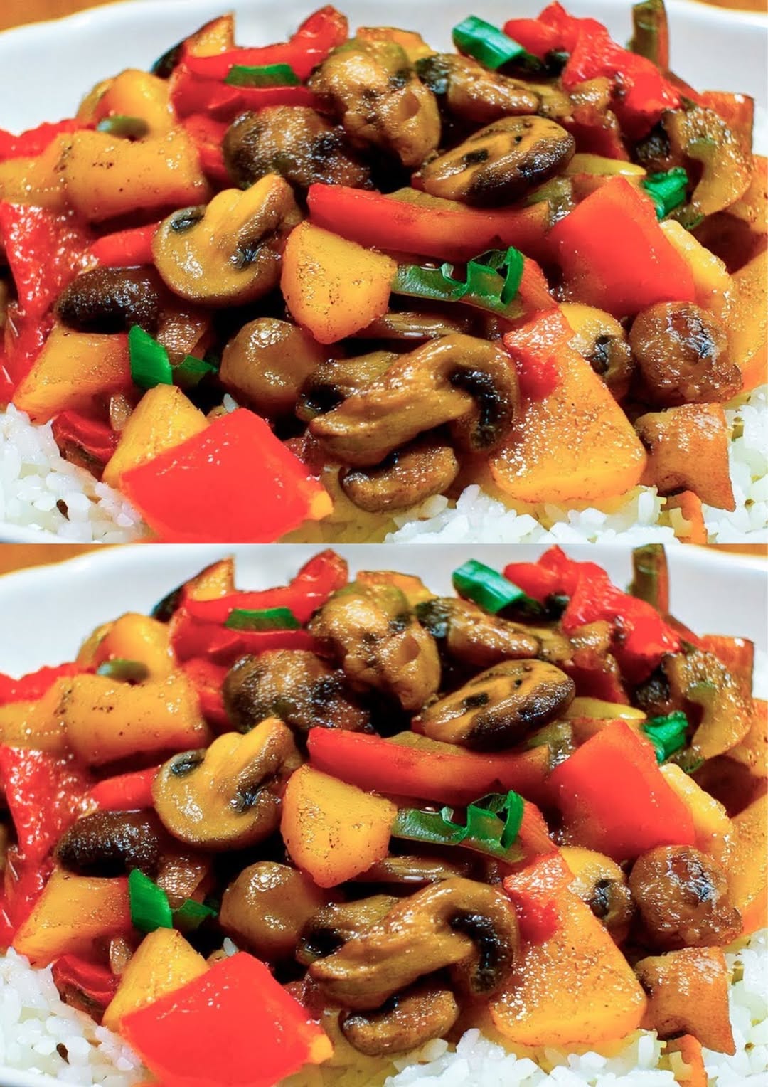 Dit recept bewijst dat vegetarische maaltijden even bevredigend en smaakvol kunnen zijn als vleesgerechten, met een verrassende diversiteit aan texturen en smaken.