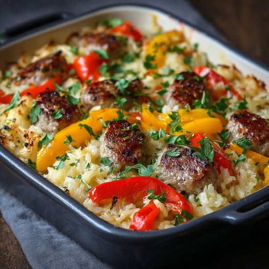 Rijstgratin met Worstjes en Paprika: Een Hartige Maaltijd vol Smaak