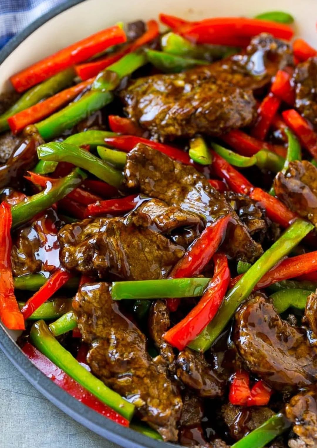De Roerbak van Pepersteak is een culinaire ambassadeur die de essentie van Aziatische keuken overbrengt naar uw eigen keuken. Dit gerecht combineert de zachte textuur van flanksteak met de levendige kleuren en smaken van paprika’s, ondergedompeld in een verleidelijke sojasaus. Het is een gerecht dat de kunst van snelle bereiding verenigt met diepe, gelaagde smaken.
