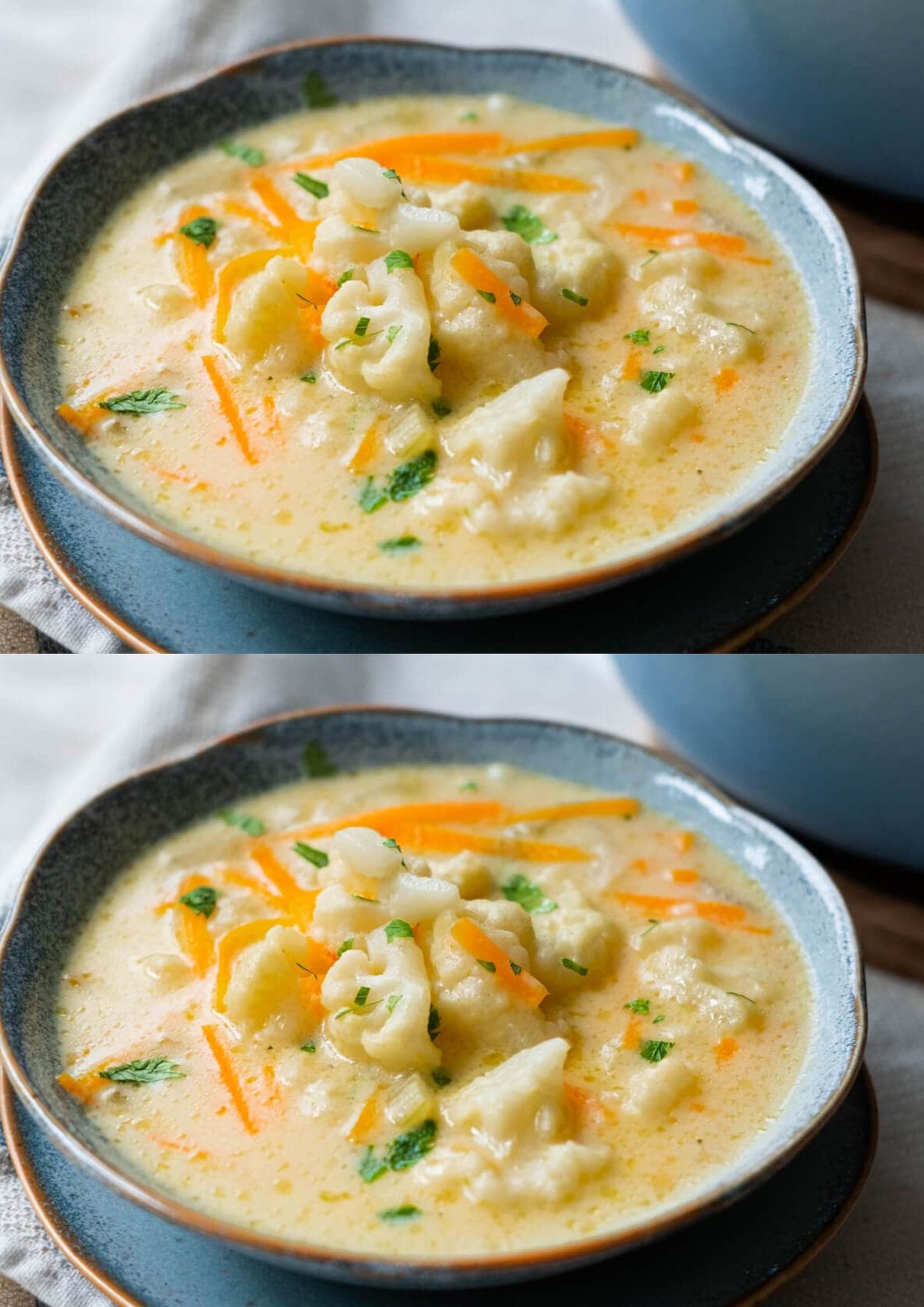 Geniet van deze romige bloemkoolsoep – een gerecht dat warmte, smaak en comfort combineert!