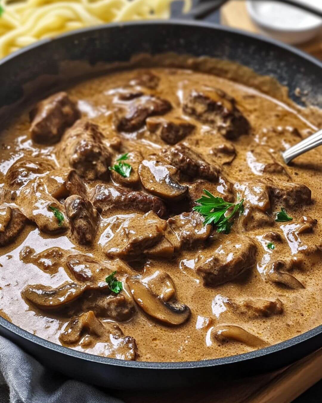 Eet smakelijk en geniet van deze klassieke stroganoff!