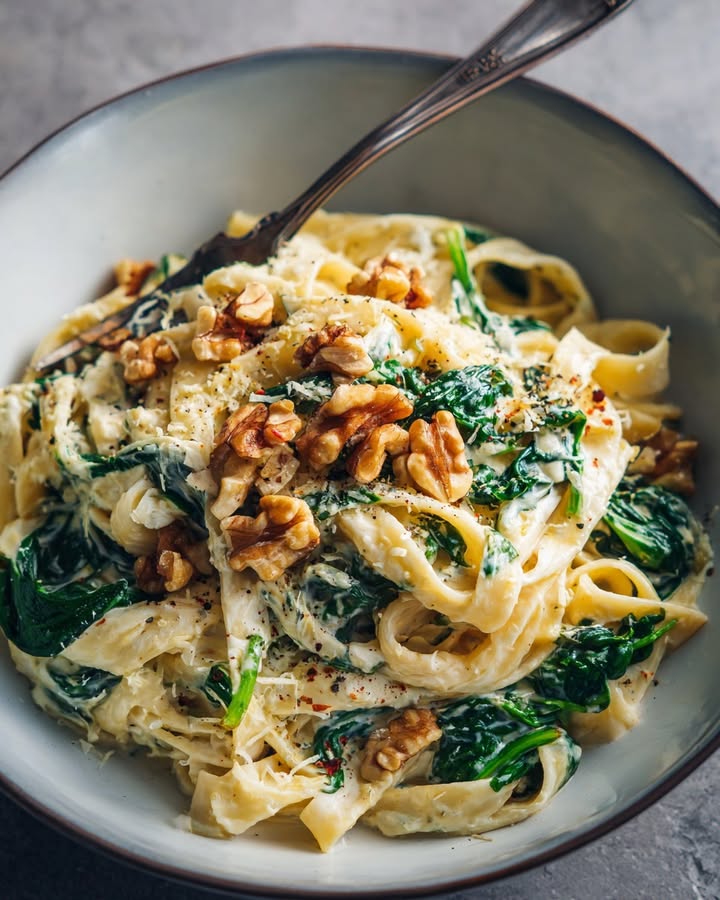 Waarom Deze Romige Brie-Pasta met Spinazie en Walnoten Gezond en Lekker is