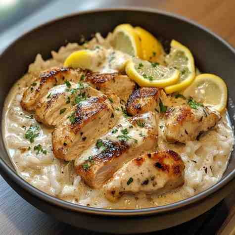 Dit gerecht verenigt de klassieke smaken van de mediterrane keuken met de eenvoud van huiselijke kookkunst. De combinatie van citroen, knoflook en room schept een romige saus die de malse kip omhult, terwijl de rijst perfect de intense smaken opvangt.
