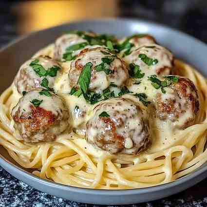 Geniet van deze heerlijke, romige gehaktballetjes met pasta – een ware smaaksensatie!