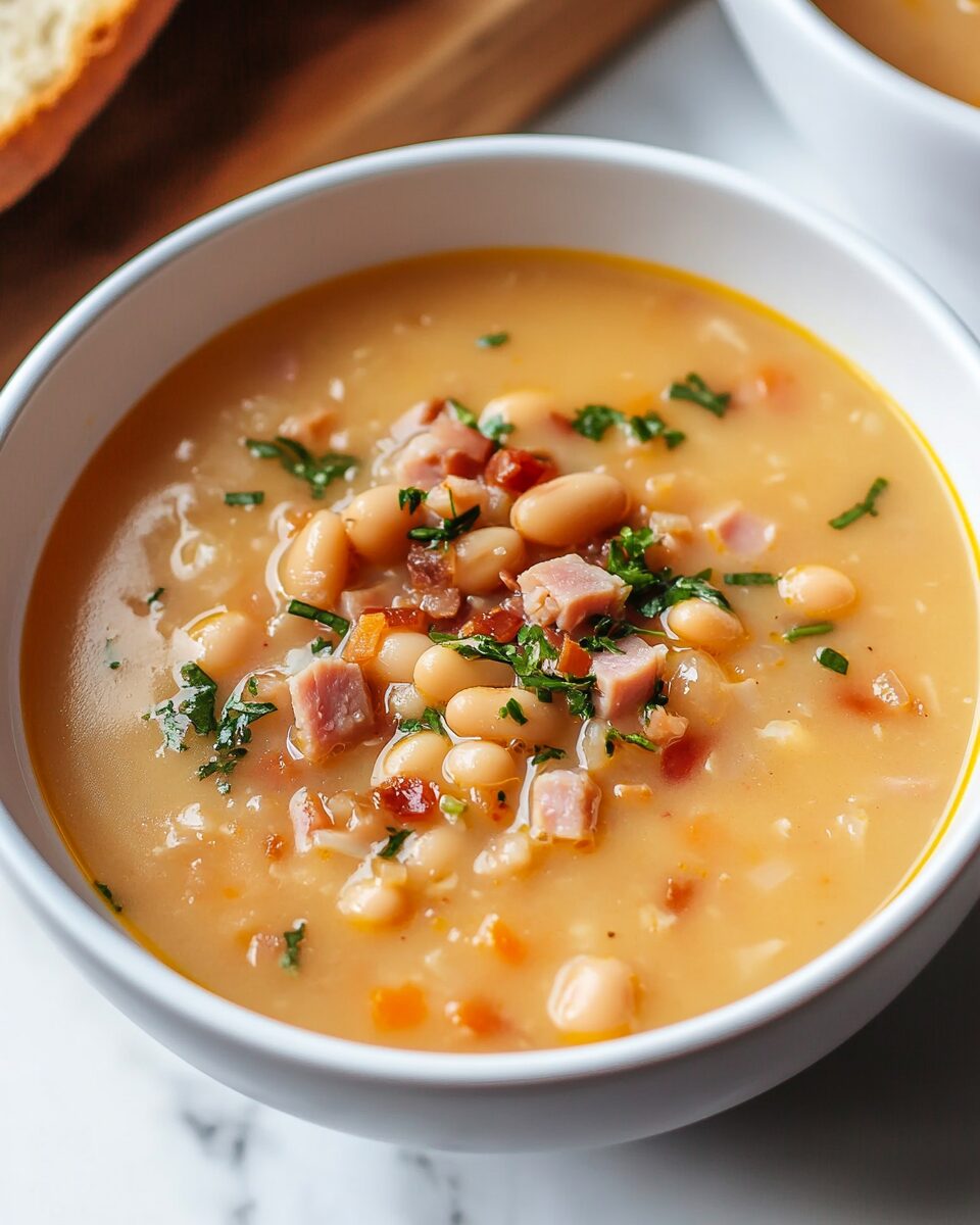 Deze ham- en wittebonensoep is meer dan een gerecht – het is een warme omarming van traditie en eenvoudige, voedzame ingrediënten. Een perfect gerecht dat troost brengt en herinnert aan grootmoeders keuken.