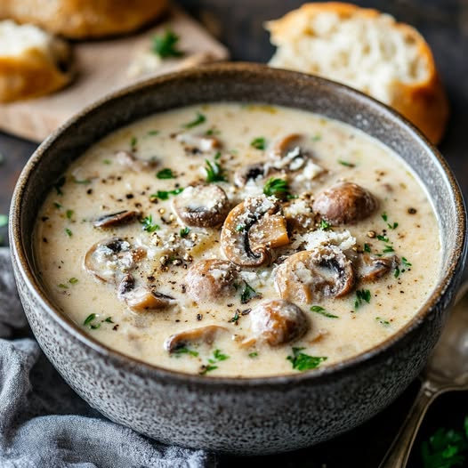 In de warme, gezellige keukens van Italië, waar generaties recepten worden doorgegeven, staat deze romige soep symbool voor de kunst van eenvoudige, hartverwarmende maaltijden. Een gerecht dat de rijke smaken van Italiaanse worst, aardse champignons en de romige textuur van Parmezaanse kaas perfect combineert.