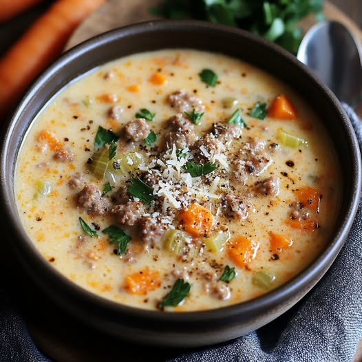 Deze romige soep is een verrukkelijke combinatie van rustieke Italiaanse smaken en Nederlandse kookkunst. Een gerecht dat warmte, comfort en rijke smaaklagen verenigt, perfect voor koude winterdagen of wanneer je behoefte hebt aan een voedzame maaltijd. De combinatie van kruidige Italiaanse worst, romige textuur en verse groenten maakt dit gerecht tot een waar culinair feest.