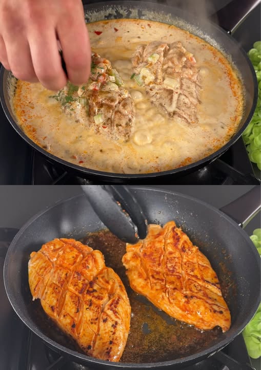 - Kip aanbraden: Bak de kipfilets goudbruin in dezelfde pan.