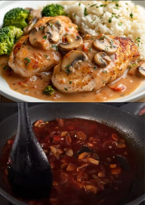 - Serveer de kipfilets met de romige saus, gekookte rijst en groenten.