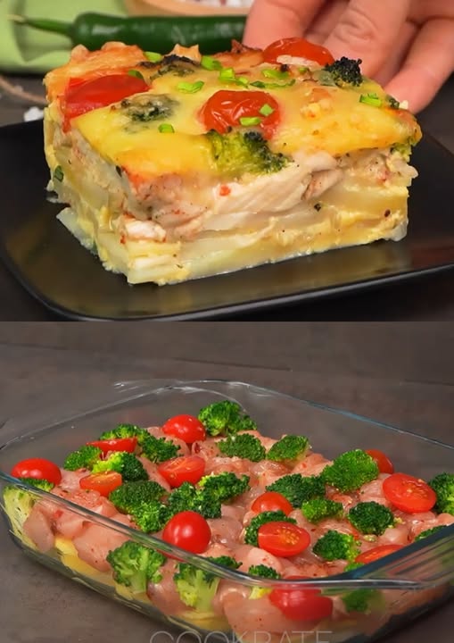 Deze ovenschotel met malse kipfilet heeft de culinaire wereld stormenderhand veroverd en is inmiddels een sensatie onder thuiskoks. Het geheim? Een perfecte balans tussen voedzame ingrediënten, minimale inspanning en maximale smaak! De combinatie van sappige kipfilet, knapperige broccoli en romige aardappelen, overgoten met een zijdezachte saus van room en kruiden, zorgt voor een gerecht dat zowel comfortfood als verrassend verfijnd is.