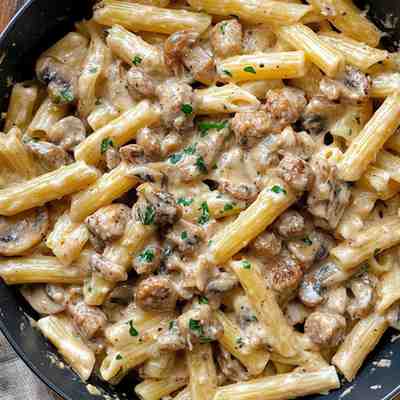 Stel je voor: een gezellige avond in de keuken, waar de verleidelijke aroma’s van gebakken worst, knapperige champignons en romige saus je zintuigen prikkelen. Deze romige pastaschotel is meer dan zomaar een doordeweekse maaltijd – het is een culinaire reis die Italiaanse smaken combineert met eenvoud en comfort.