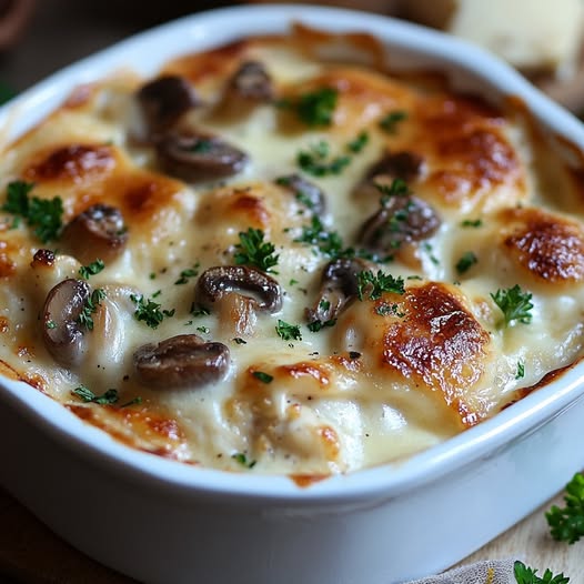 Deze pastaschotel combineert de romigheid van de saus, de malse textuur van de kip, en de aardse smaak van champignons in één heerlijk gerecht. Het is een ideale maaltijd voor gezinnen die willen genieten van een voedzame en smakelijke schotel zonder uren in de keuken te hoeven doorbrengen.
