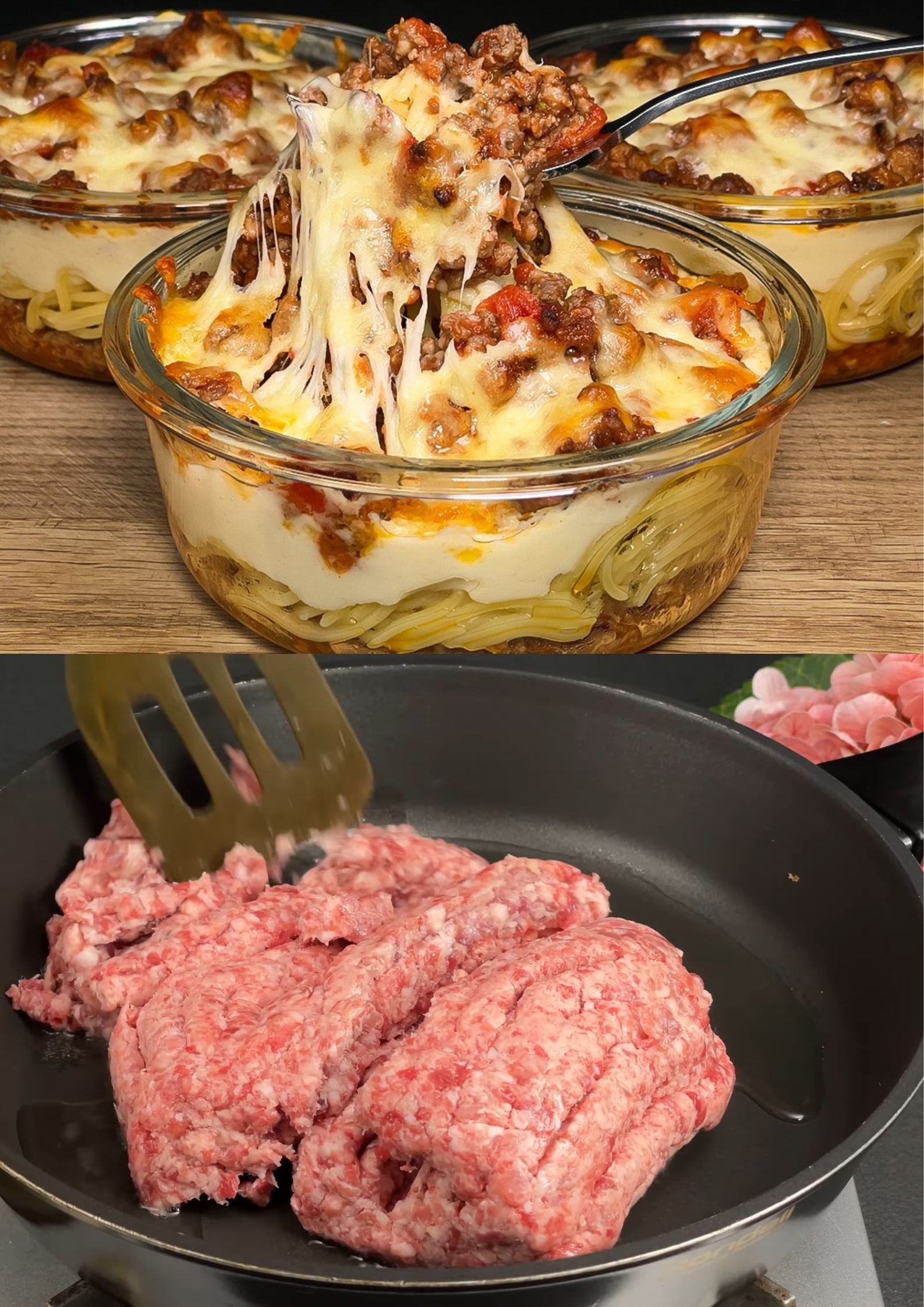 Deze heerlijke pastaschotel combineert al dente spaghetti met een rijke gehaktsaus en romige bechamelsaus, afgetopt met gesmolten mozzarella. Een perfect gerecht voor een gezinsmaaltijd.