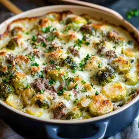 Oorspronkelijk afkomstig uit de traditionele Nederlandse keuken, is deze gratin een moderne interpretatie van klassieke bereidingswijzen. Spruitjes, vaak een ondergewaardeerde groente, worden hier verheven tot de ster van het gerecht, ondersteund door een romige saus en gekruid rundvlees.