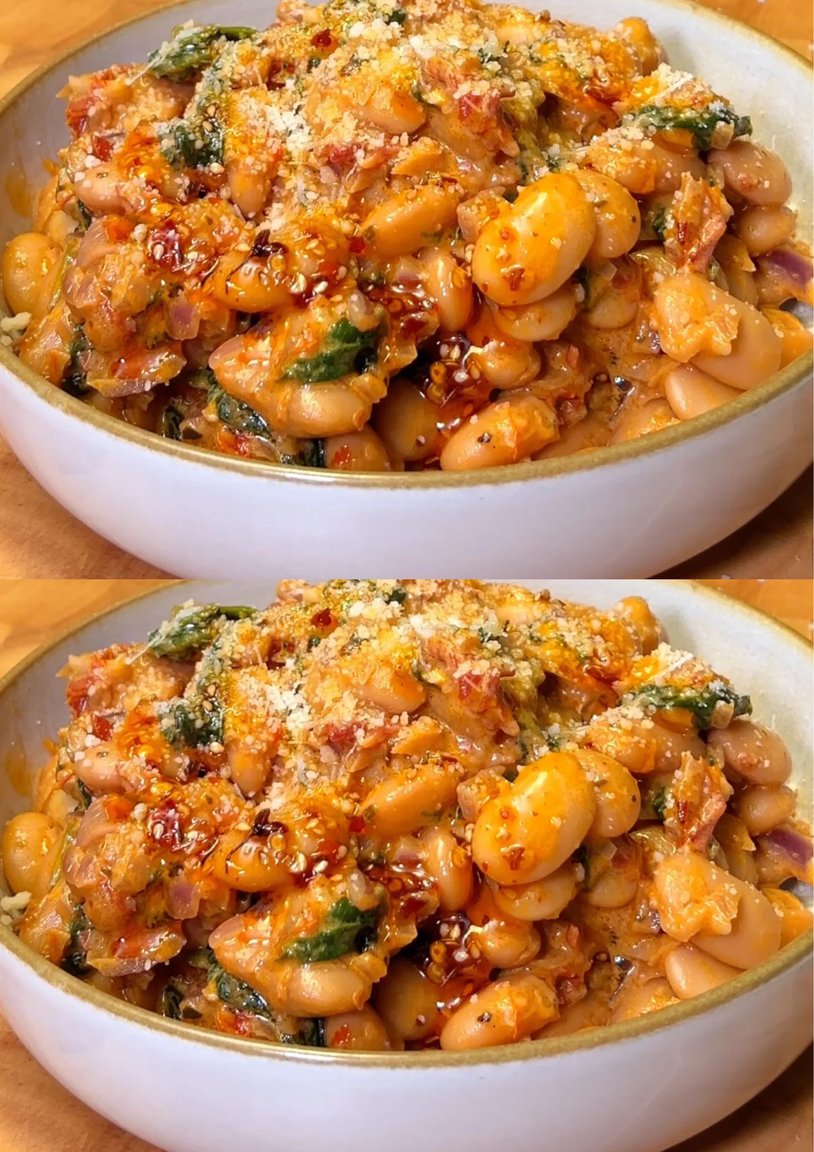 Deze rijke, romige bonenstoofschotel combineert de klassieke smaken van de Toscaanse keuken met comfort food. De combinatie van zachte cannellinibonen, zoete zongedroogde tomaten en romige saus creëert een weelderig gerecht dat perfect past bij een rustieke maaltijd.