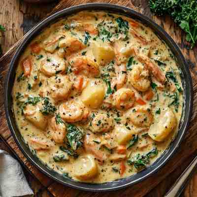 Laat je meevoeren naar de zonnige kusten van de Middellandse Zee met dit heerlijke gerecht dat de essentie van mediterrane keuken perfect vangt. Deze romige zeevruchtenschotel combineert de rijke smaken van verse zeevruchten, knapperige groenten en romige roomkaas in een maaltijd die zowel gemakkelijk als verfijnd is.