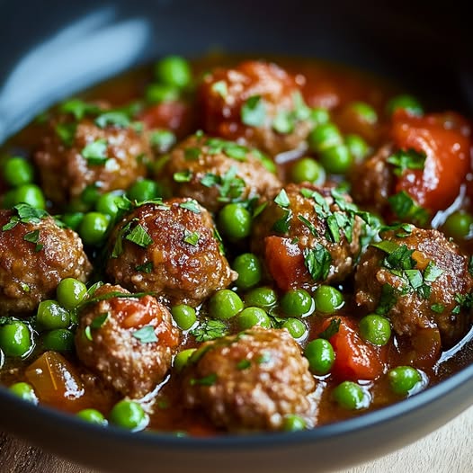 Dit gerecht vertelt het verhaal van eenvoudige, tijdloze kookkunst – een traditie die generaties lang families heeft verenigd rond de eettafel. Rundergehaktballetjes gestoofd in een rijke tomatensaus met zoete erwten zijn meer dan een maaltijd; het is een culinaire ervaring die troost en herinnering oproept.