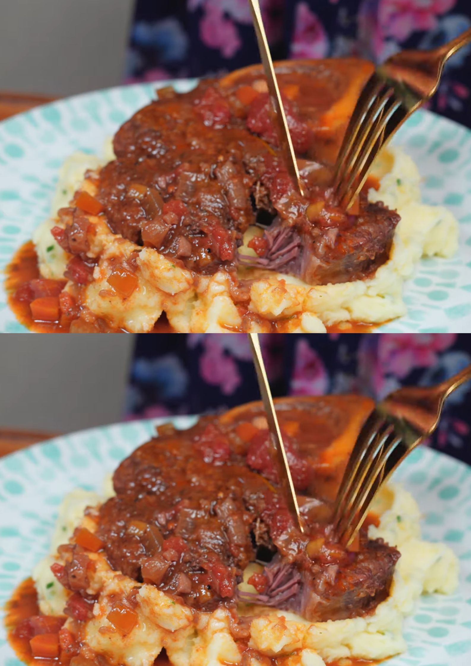 Geniet van deze ongelooflijk heerlijke runderschenkel-maaltijd!