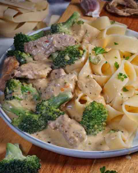 Schweinegeschnetzeltes – ein traditionelles deutsches Gericht, das Herzhaftigkeit und Cremigkeit perfekt vereint. Zartes Schweinefilet, kombiniert mit knackigem Brokkoli und einer cremigen Sauce, serviert über weichem Reis oder Pasta – ein Gericht, das Herz und Seele wärmt.