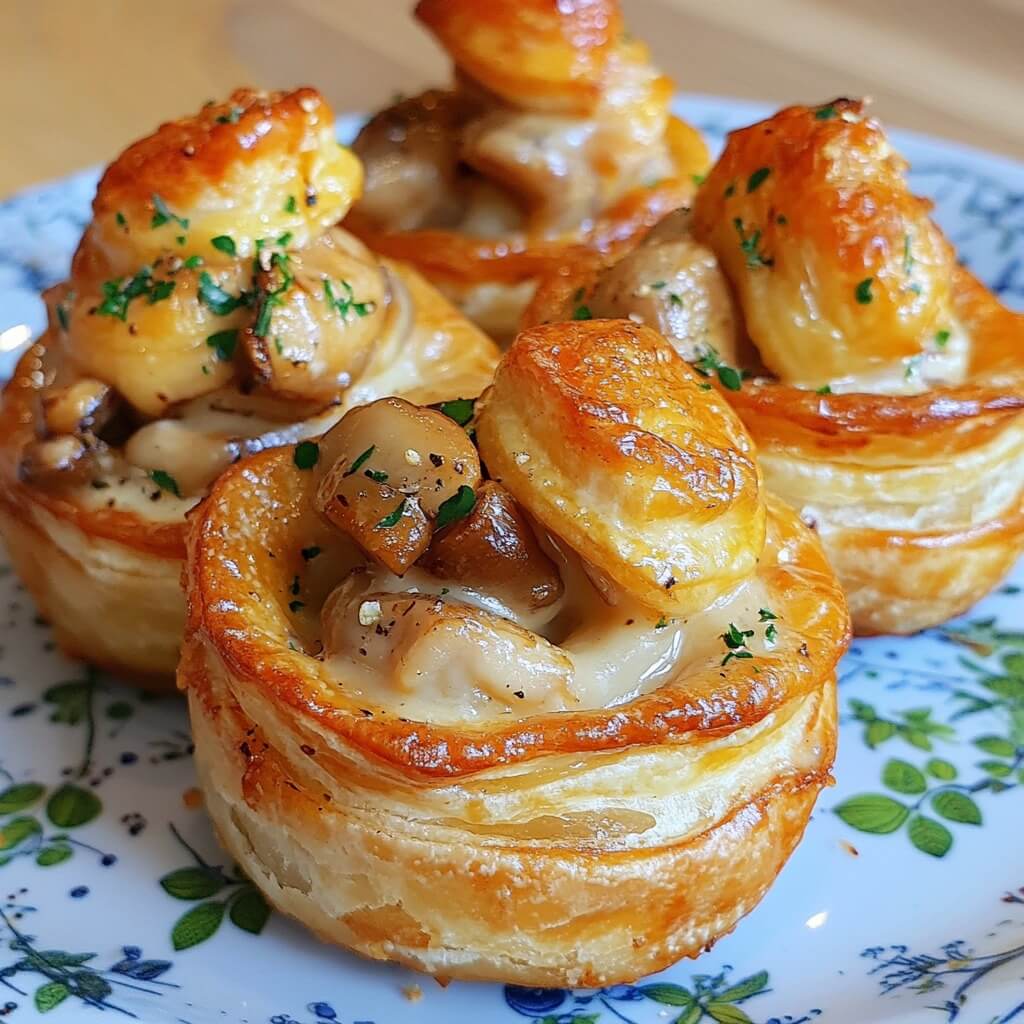 - Vul de bladerdeegkorsten met het mengsel.