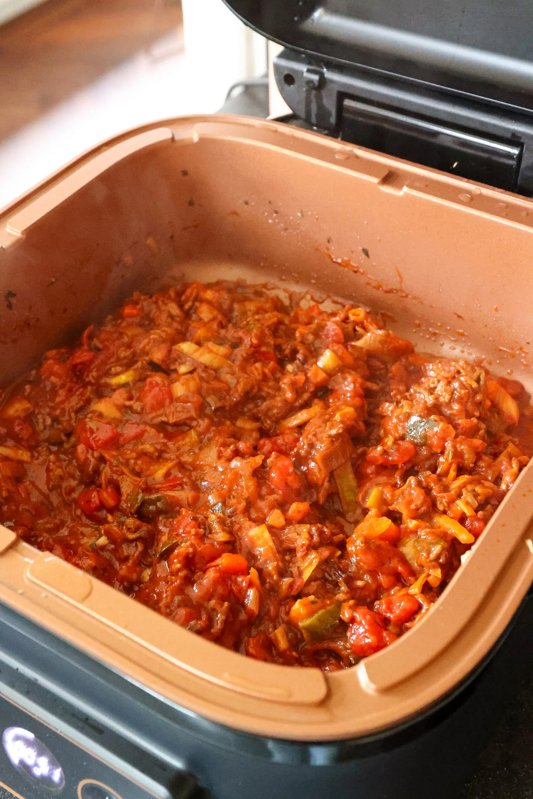 - Wil je de saus langer laten sudderen? Zet de slowcooker dan op ‘low’ en laat de bolognesesaus 4 tot 6 uur rustig garen voor een nog diepere smaak.