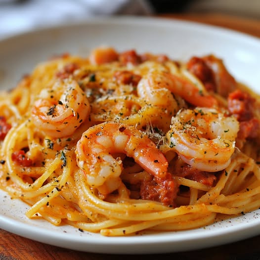 Spaghetti met Paprika-, Chorizo- en Garnalenroomsaus: Een Culinaire Reis door Smaken