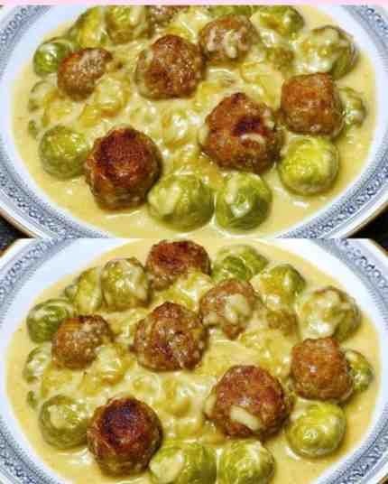 - Spruitjes en gehaktballetjes aan saus toevoegen.