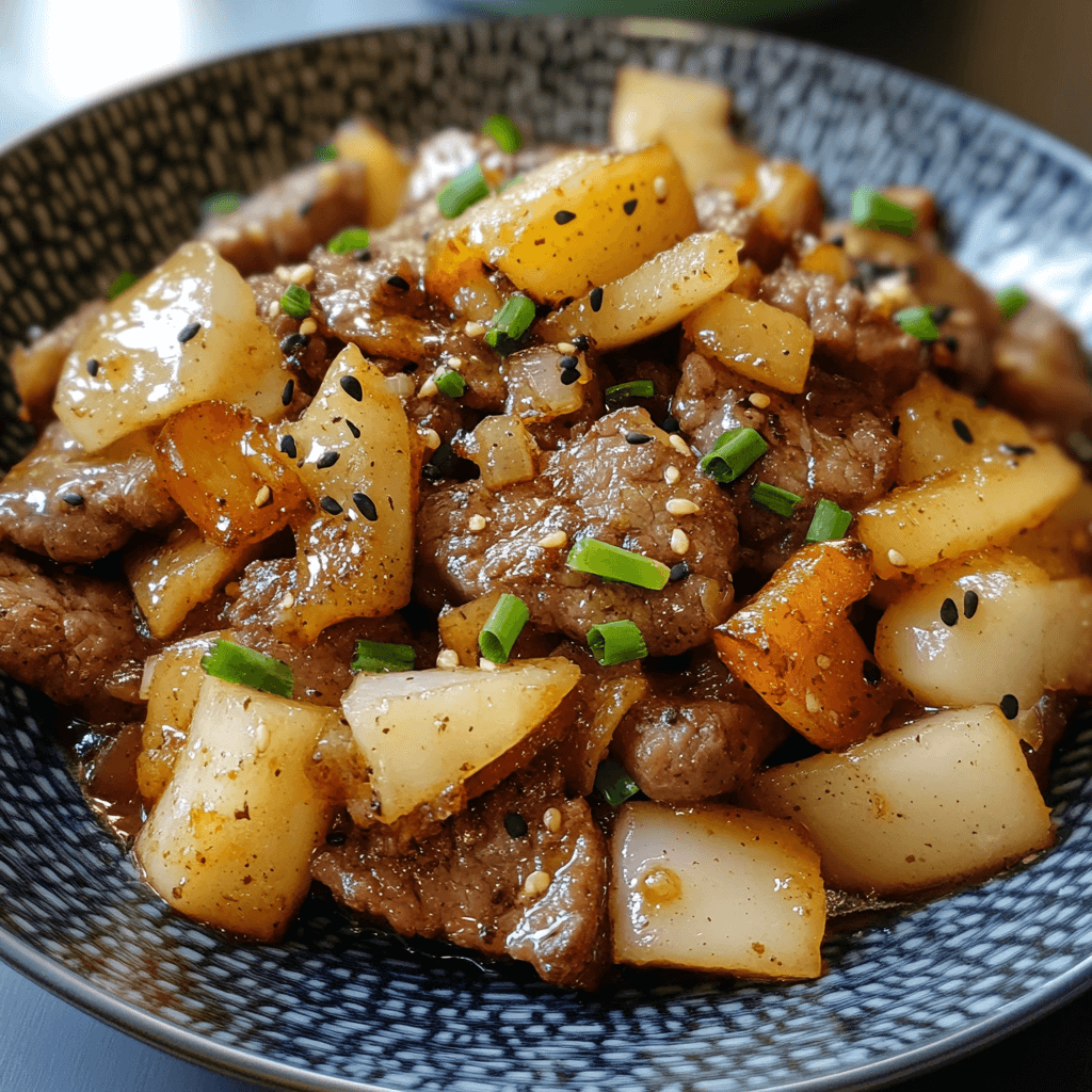 Dit weelderige stoofgerecht combineert mals rundvlees met zoete appels en knapperig spek voor een onweerstaanbare smaakervaring.
