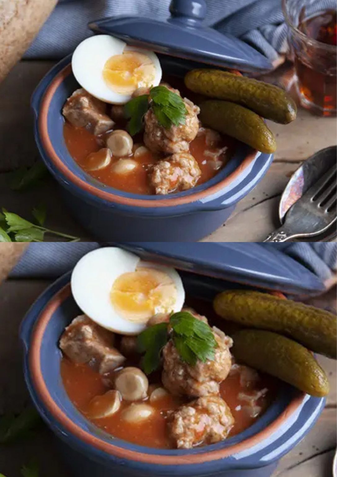 3. Voeg de gehaktballetjes toe aan de kokende bouillon met kalfspoulet en laat deze 10 minuten meegaren.