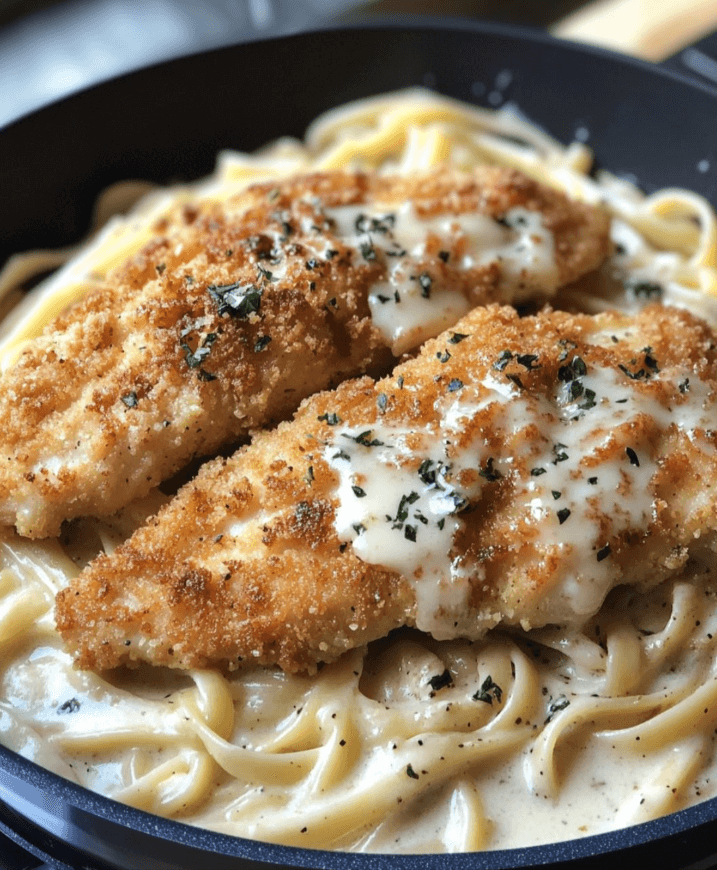 De Kipfettuccine Alfredo is meer dan zomaar een maaltijd – het is een culinaire ervaring die de rijke Italiaanse kooktraditie verenigt met moderne bereidingstechnieken. Dit gerecht combineert de romige, rijke smaak van klassieke Alfredo-saus met krokant gepaneerde kip, wat resulteert in een onweerstaanbare combinatie van texturen en smaken.