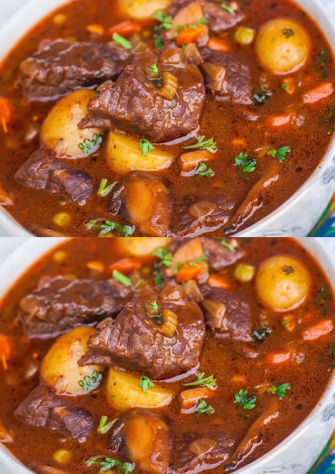 Deze stoofpot is meer dan zomaar een gerecht – het is een culinaire reis die generaties van kookliefhebbers zal bekoren. Een recept dat de rijkdom van rundvlees combineert met een perfecte mengeling van groenten en kruiden.