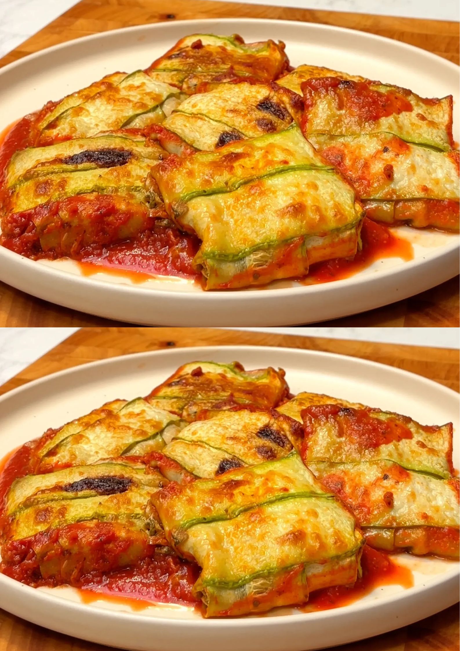 Deze innovatieve interpretatie van traditionele ravioli vervangt pastadeeg door dunne plakjes courgette, gevuld met een romige, kruidige spinazie-vulling. Dit gerecht biedt een elegante, lichte en voedzame maaltijdoptie die perfect past binnen een plantaardig en koolhydraatarm voedingspatroon.