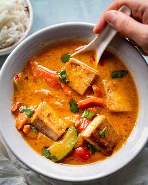 De Thaise rode curry is meer dan zomaar een gerecht – het is een culinaire ervaring die de ziel van Zuidoost-Aziatische kookkunst belichaamt. Deze veganistische versie eert de traditionele smaken terwijl we moderne, plantaardige ingrediënten omarmen, wat resulteert in een gerecht dat zowel vertrouwd als vernieuwend aanvoelt.