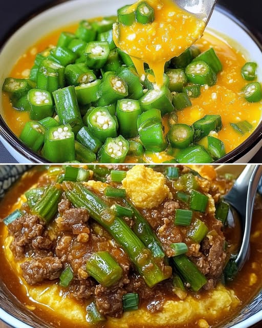 Voedzame Gestoomde Okra met Eiercustard en Rundvleessaus: Een Aziatische Culinaire Delicatesse