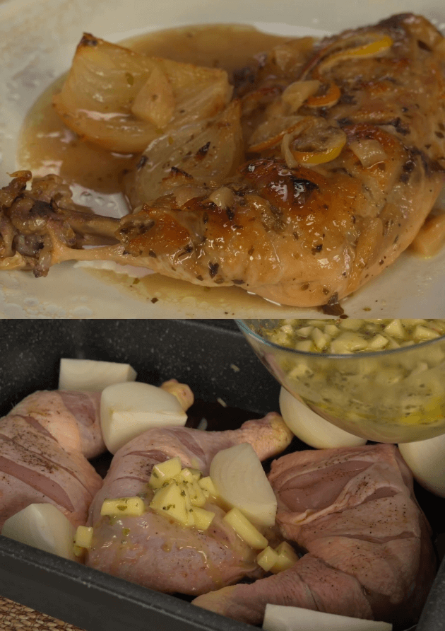6. Leg de citroenschijfjes op en rond de kip