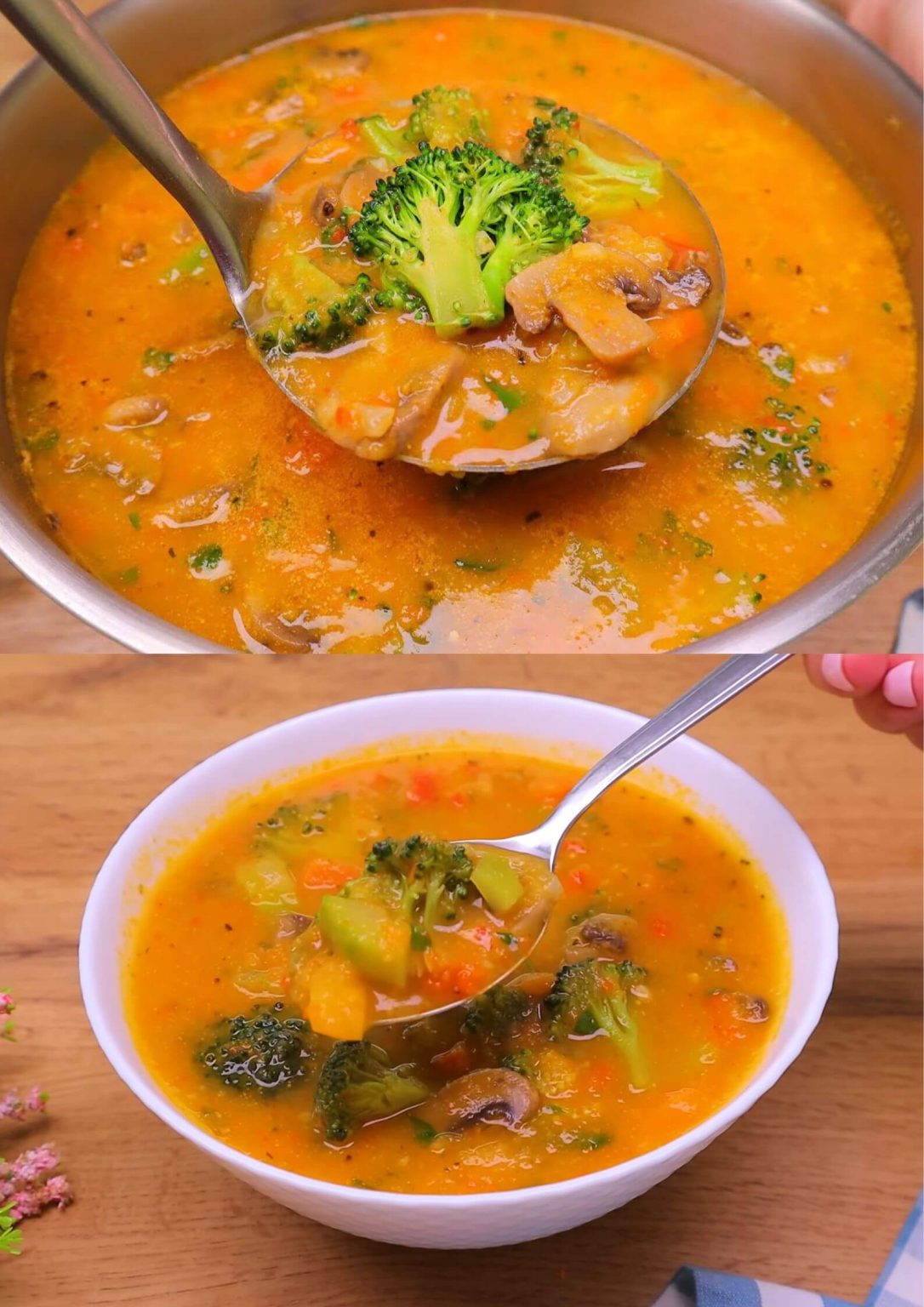 Deze voedingsrijke soep combineert de aardse smaak van champignons met de kracht van verse groenten, perfect voor wie wil genieten van een heerlijke, gezonde maaltijd.